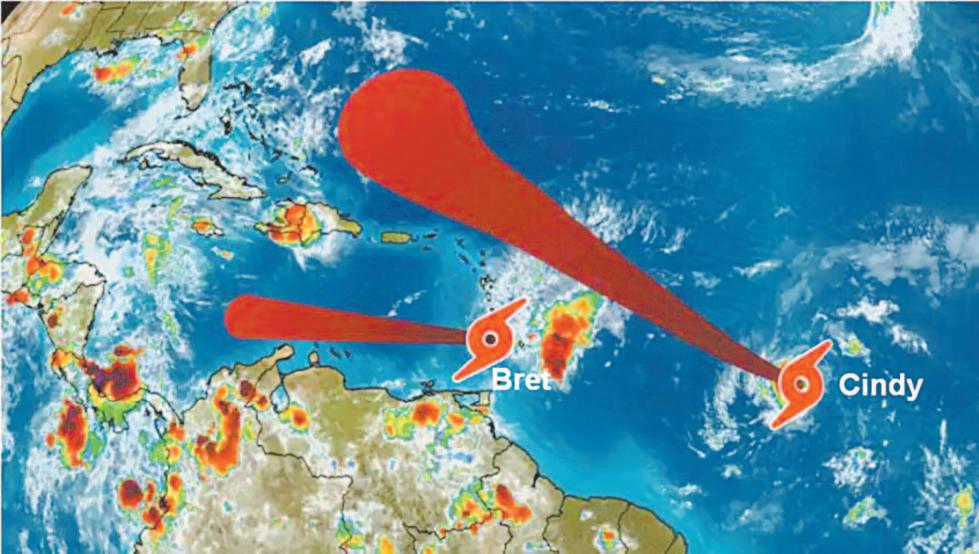 Tropical Cindy se formó detrás de la Tormenta Tropical Bret, en el primer caso de dos tormentas en el Atlántico tropical en junio desde que comenzaron los registros en el 1851, informaron ayer meteorólogos.