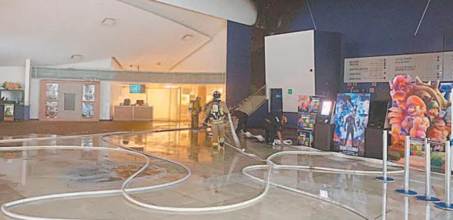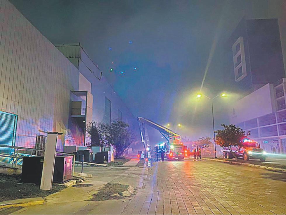 EL trabajo de los bomberos evitó que el fuego se expandiera por todo el centro comercial, cuyos establecimientos al interior estuvieron cerrados al público ayer.- (Ernesto Pinzón)