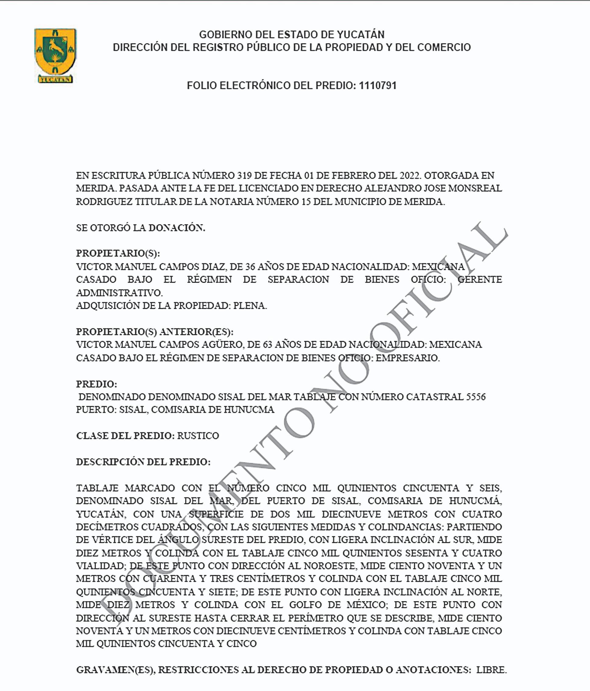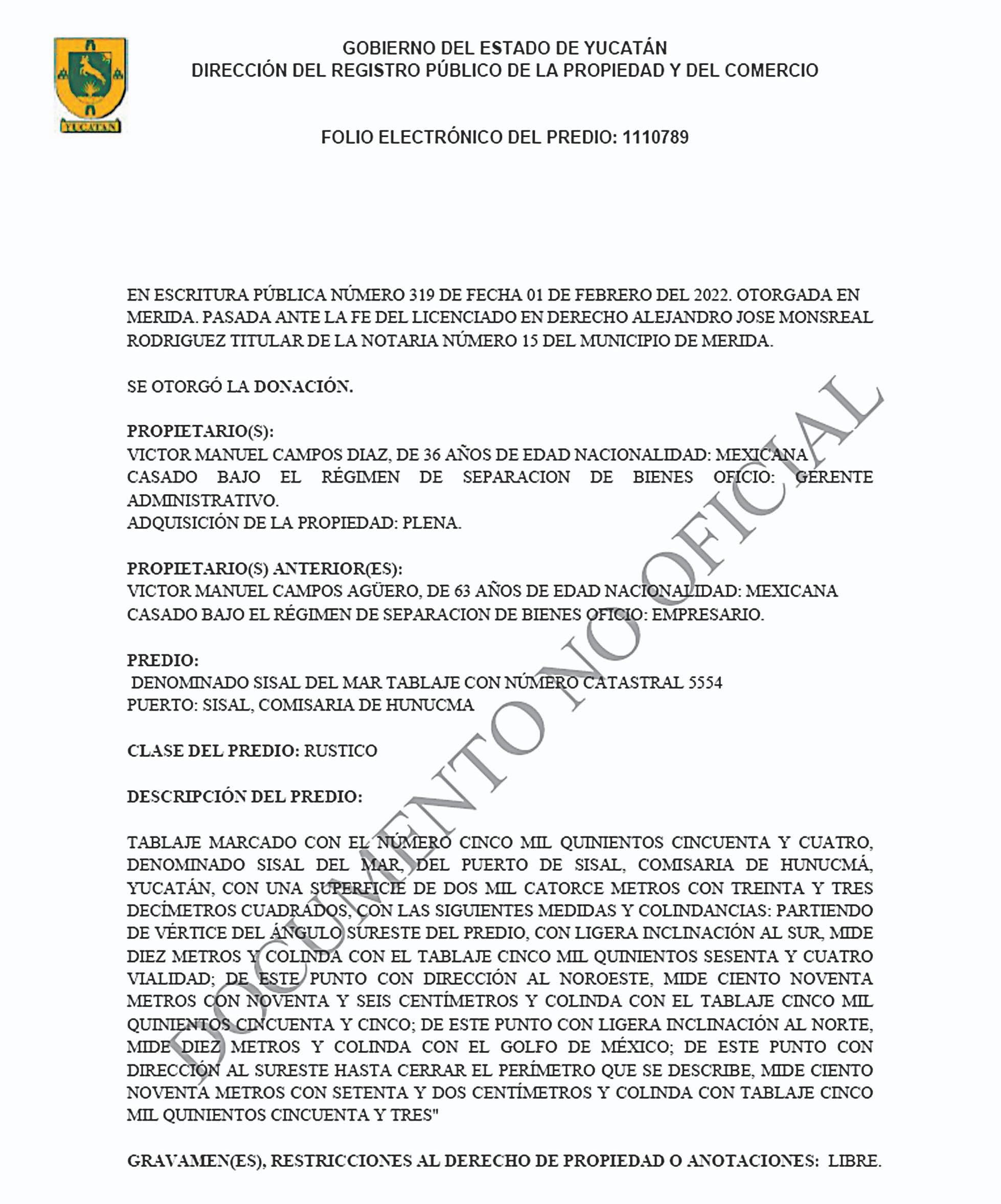 Heredan los Campos Agüero privilegios a costa de daños irreparables al medio ambiente: pasan de padres a hijos lotes en primera fila de playa para construir sus residencias de verano en Paraíso Sisal / Incendio consume parte de las salas de cine ubicadas en Plaza Altabrisa; sin lesionados / Prisión preventiva a 39 detenidos en el desalojo de terrenos ejidales de Chicxulub Ciudad 10 y 11 / Policía 21 / Municipios 28