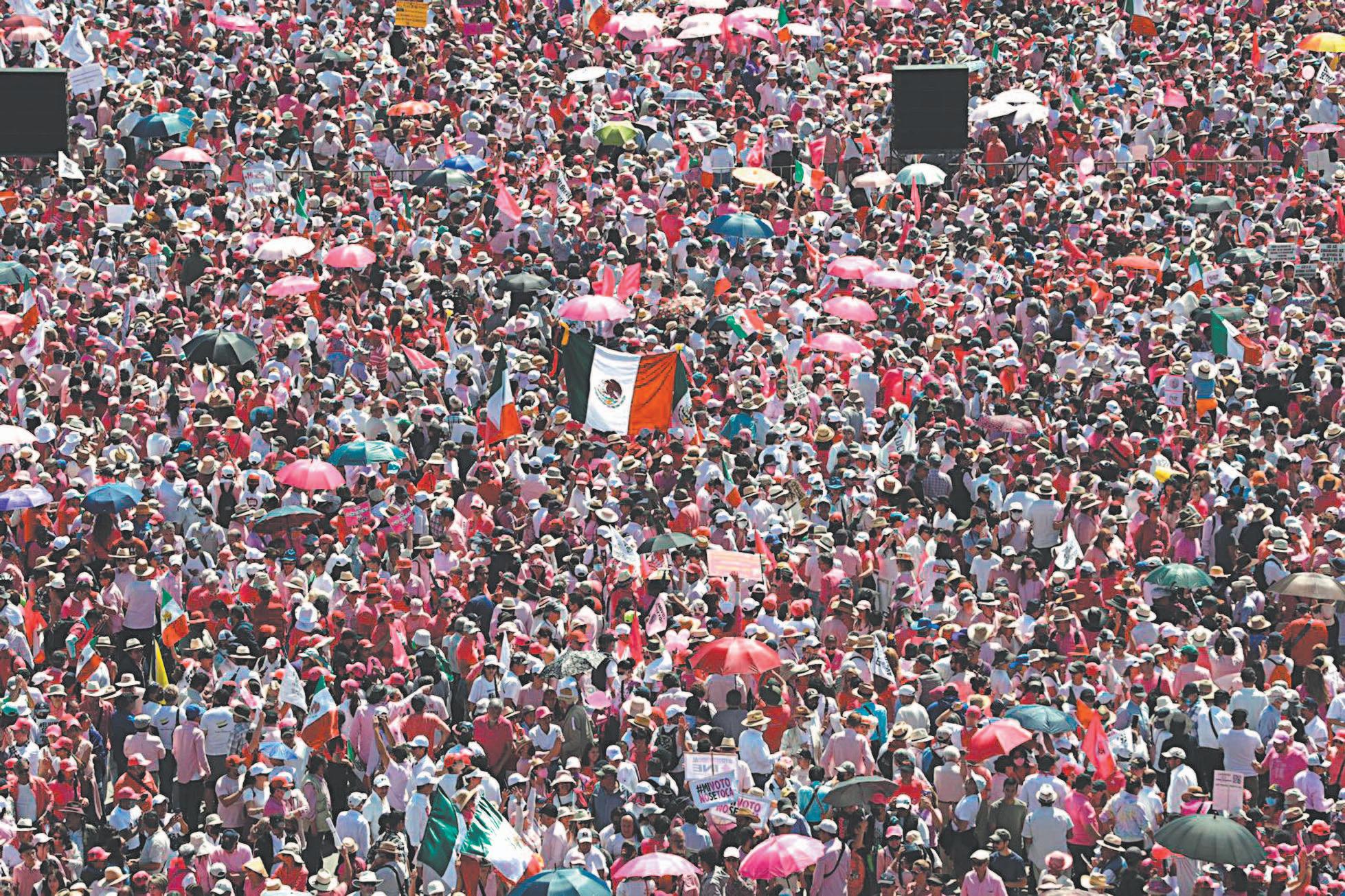 nas personas quienes acudieron al mitin en rechazo del Plan B electoral cuando se retiraban de la plaza principal de la Ciudad de México, sin que pasara a mayores.