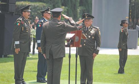 EL secretario Luis Crescencio Sandoval tomó la protesta a Gabriel García Rincón, José Alfredo González Rodríguez y Bertín Hernández Mercado, como titulares de varias áreas castrenses.- (Cuartoscuro)