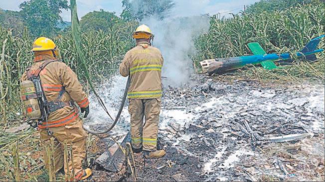 Mueren cuatro personas en el desplome de un helicóptero en Tuxpan, Jalisco