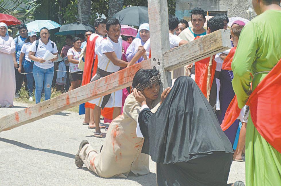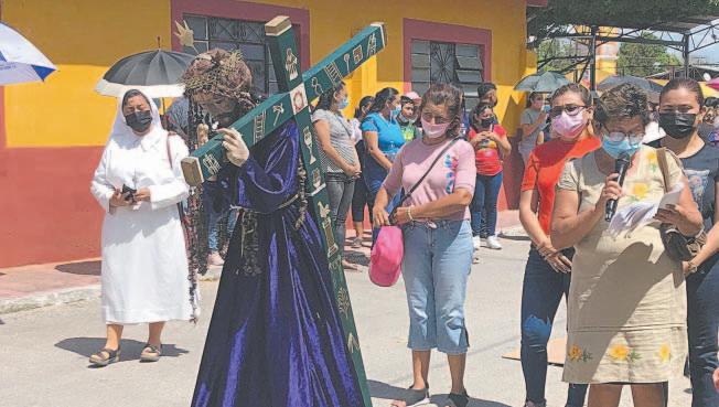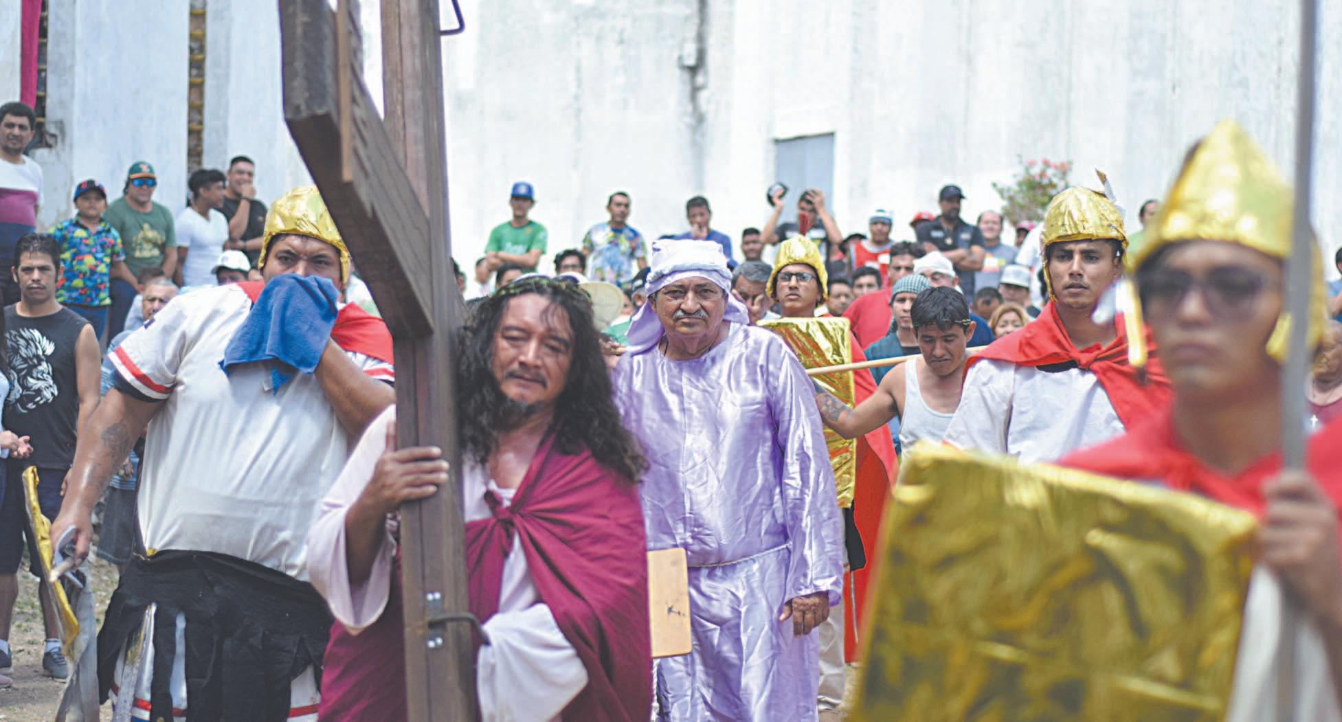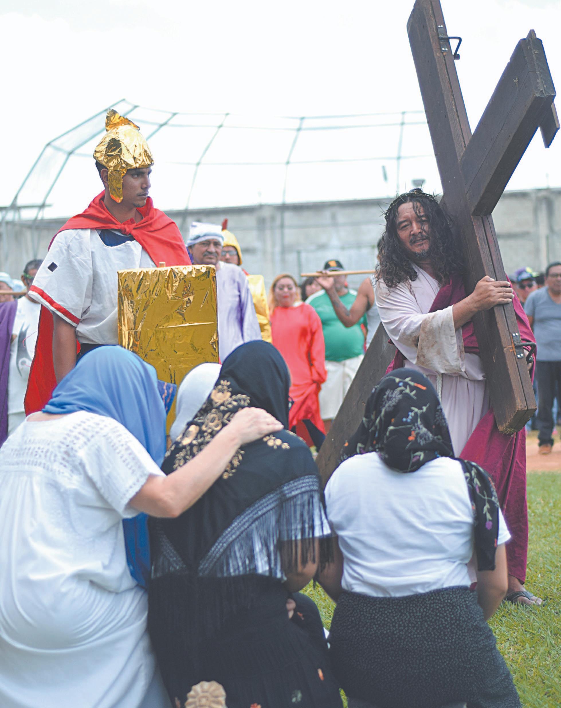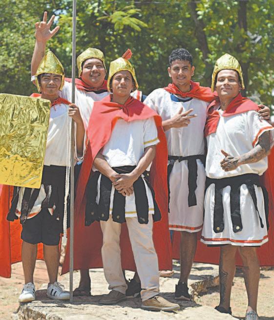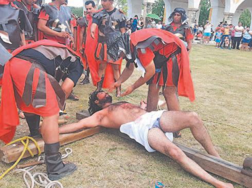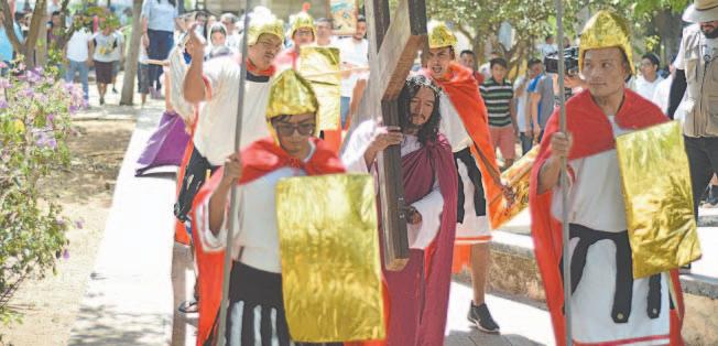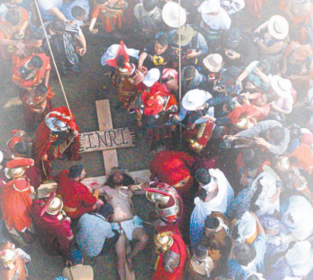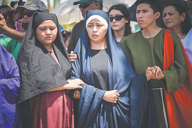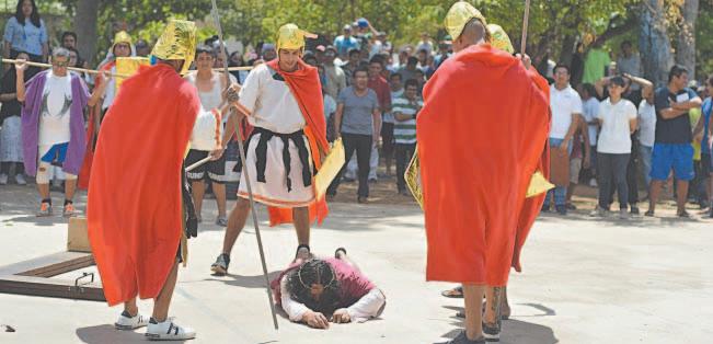 breros y lentes, para presenciar detrás de las vallas las escenas bíblicas de la muerte de Jesús.