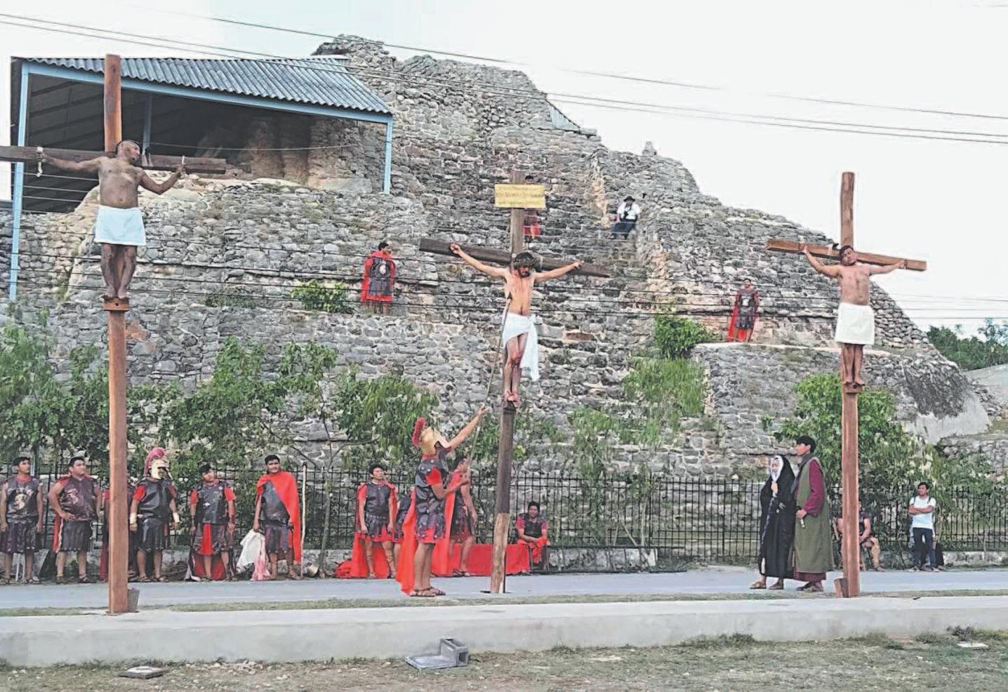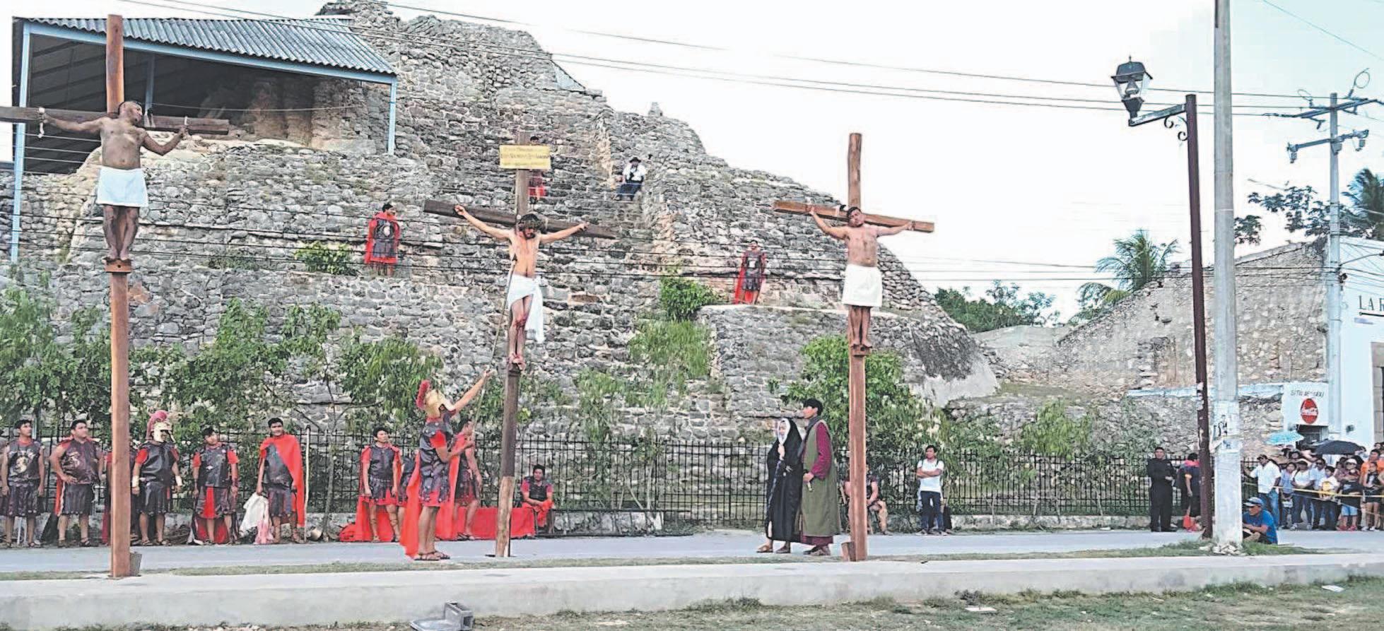 EN Acanceh, en medio del sincretismo entre la cultura maya y el catolicismo, Jesús fue crucificado frente a las pirámides precolombinas junto con los ladrones Dimas y Gestas. El sofocante Sol NO mermó el entusiasmo de multitudes de fieles que participaron con fervor.- (POR ESTO!)