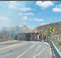 El tráiler marca Freightliner tipo nodriza que transportaba vehículos nuevos en la carretera Amozoc-Perote, volcó y dejó caer un par de autos tipo Mazda en la vialidad. El hecho ocurrió luego de que el conductor de la nodriza perdiera el control de la unidad en una curva del kilómetro 055+500 de la Ruta 140-D.