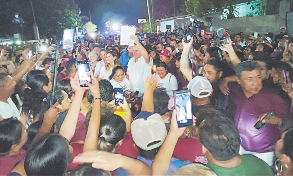 CIENTOS de personas acompañaron anoche a la excandidata, que se hará cargo de la Presidencia Municipal de la capital yucateca a partir del 1 de octubre. Mañana, Joaquín Díaz Mena recibirá la documentación oficial que lo avala como Gobernador electo del Estado, por parte del Instituto Electoral y de Participación Ciudadana.- (