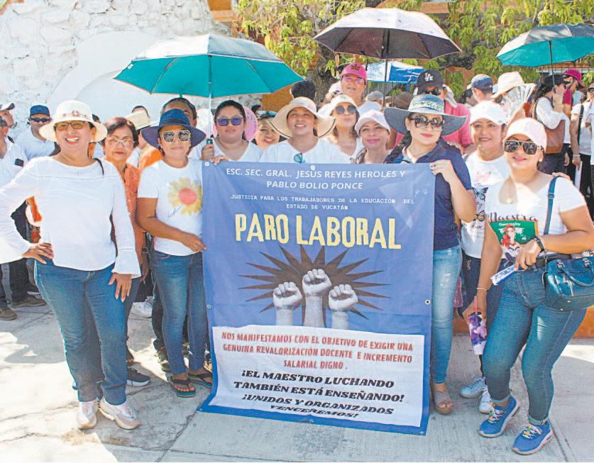 EN una nueva jornada de protestas, los trabajadores se apostaron en los edificios de las dos secciones del Sindicato Nacional de Trabajadores de la Educación; reclaman atención a su pliego petitorio.- (Edgar Ek)