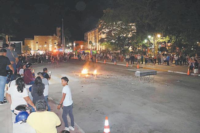 PERSONAL de vigilancia acudió al sitio en el que el sábado pasado fue derribada una barda, y donde de nueva cuenta los empresarios pretenden construir, de forma ilegal, en la vía pública.- (POR ESTO!)