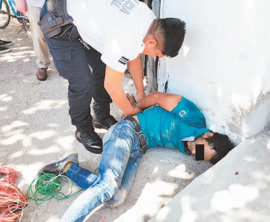 Vecinos someten a un ladrón; lo amarraron con los mismos cables que se robó
