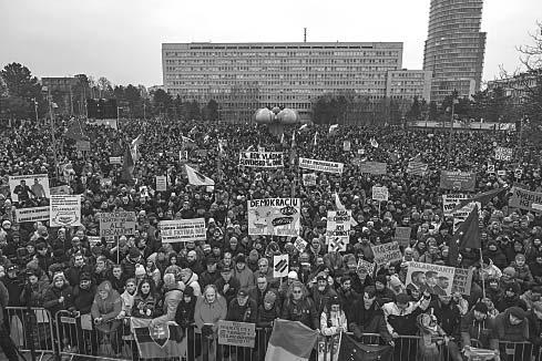 La manifestación de ayer en Bratislava fue multitudinaria. (AP)