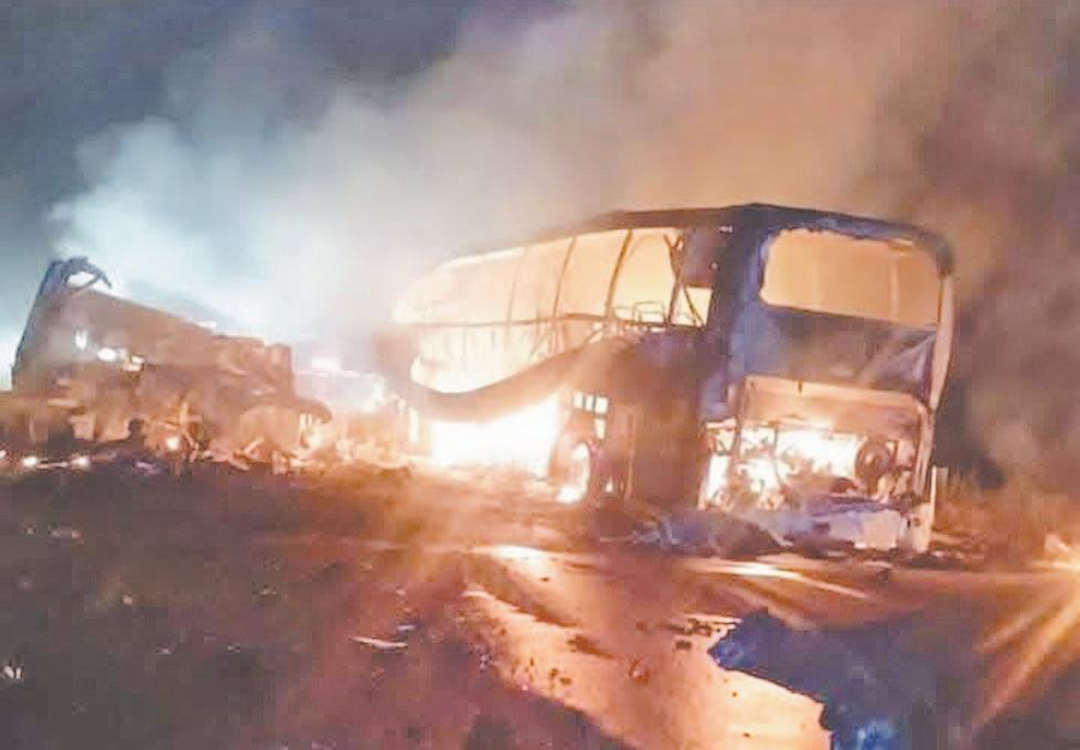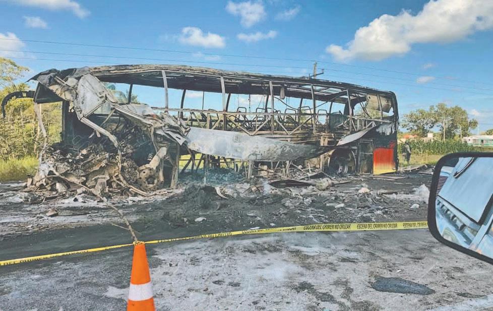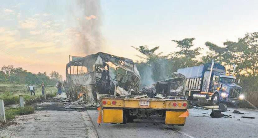 Más de 30 personas pierden la vida, calcinadas, al impactarse de frente un autobús de pasajeros y un tráiler; aunque los pobladores de las zonas aledañas intentaron auxiliar a las víctimas, fue imposible debido a las llamas provocadas por el encontronazo. Según datos oficiales, solo nueve personas sobrevivieron: siete están hospitalizadas, y dos de ellas se encuentran en estado grave Ciudad 11, 12 y 13