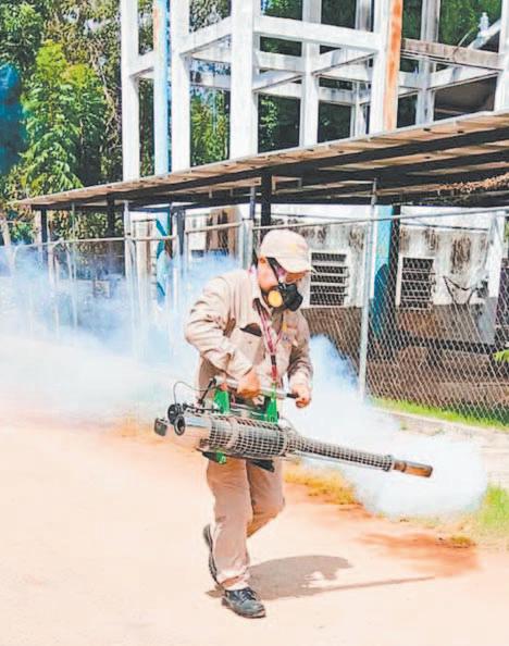EDIFICIOS y calles de la cabecera municipal de la Garganta del Sol fueron nebulizados debido a los reportes de enfermedades transmitidas por mosquitos.- (Erik C.)