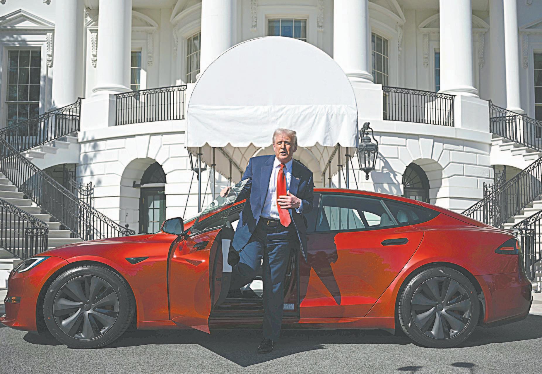 El presidente Donald Trump buscó ayer un nuevo Tesla en la entrada de la Casa Blanca y eligió un sedán rojo brillante para mostrar su apoyo a la empresa de vehículos eléctricos de Elon Musk mientras enfrenta críticas por su trabajo para avanzar en la agenda política del presidente y reducir el tamaño del Gobierno federal.