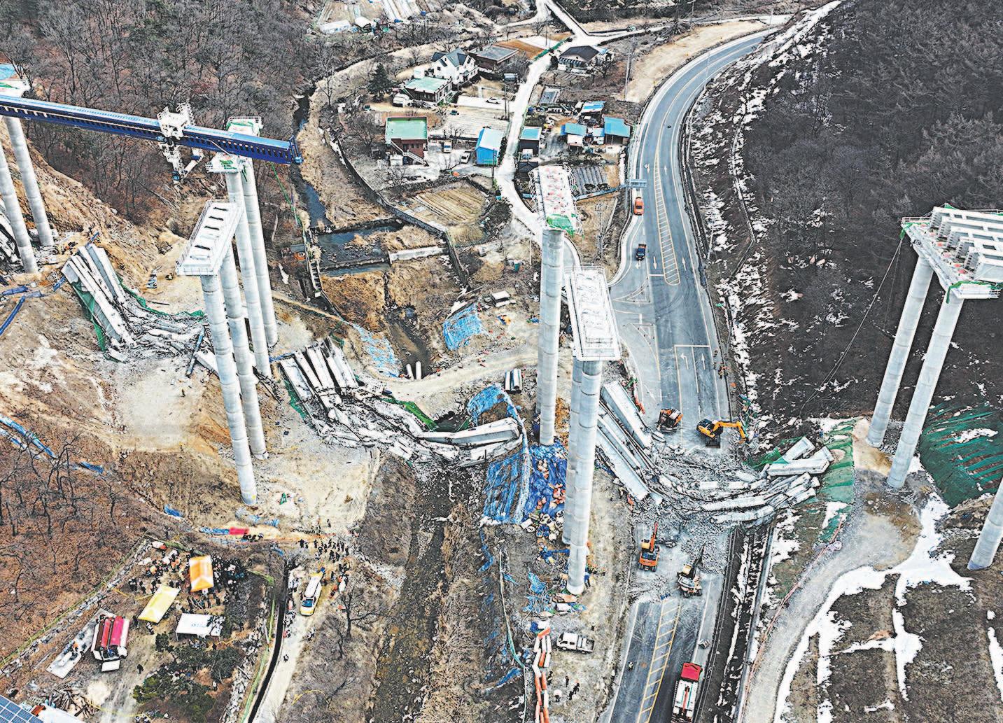 El incidente se produjo alrededor de las 9:49 horas, en un puente en construcción que conecta la sección Ansan-Yongin de la autopista Seoul-Sejong, cuando 50 metros de vigas de acero se desplomaron.