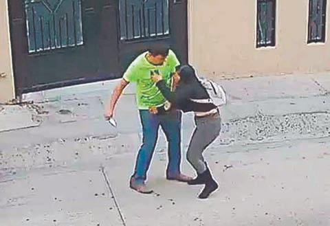 Cámaras de vigilancia captaron la agresión. En la grabación se ve a un individuo de camisa fosforescente con un cuchillo en la mano que va tras Milagros Monserrat. (Agencias)