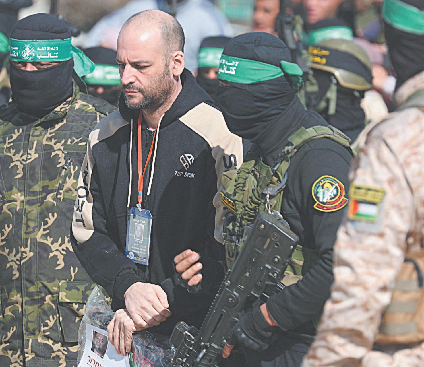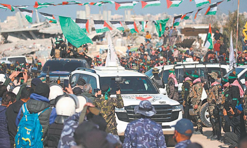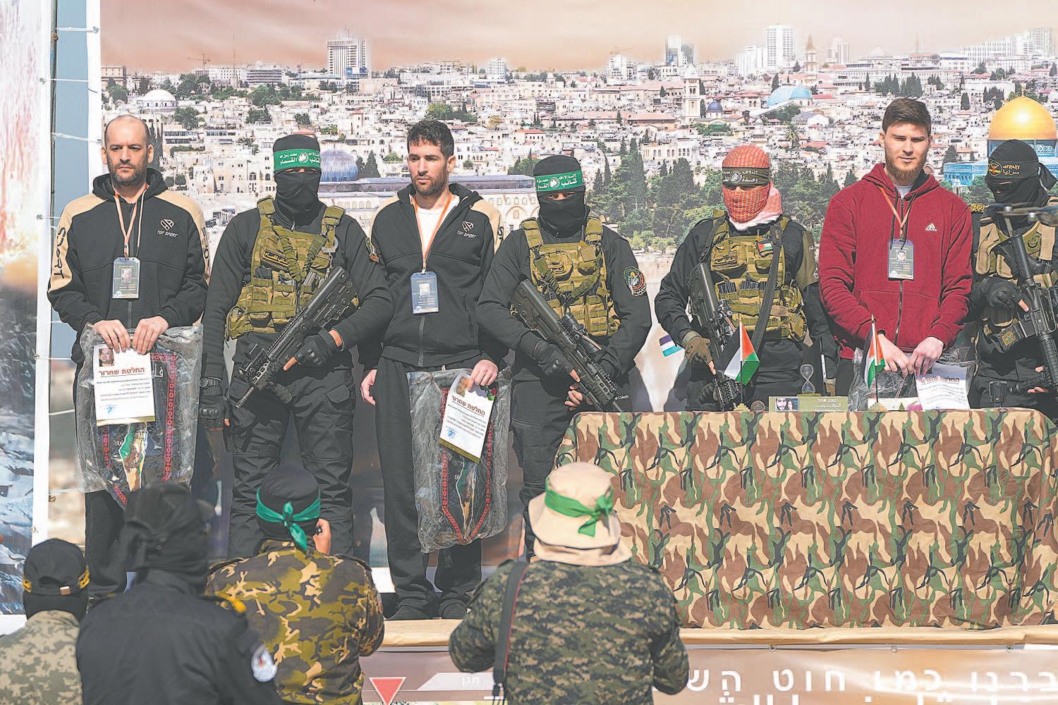 GAZA.- Los milicianos del grupo islamista Hamas entregaron ayer a tres rehenes israelíes que fueron liberados en una ceremonia en la Franja Gaza, que incluyó un reloj de arena con el mensaje “El tiempo se está agotando”. A cambio, Israel liberó a 369 presos palestinos.