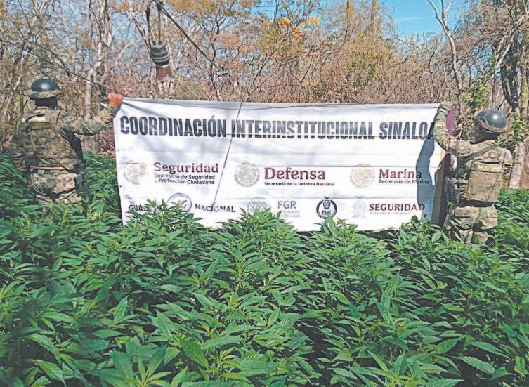 CULIACÁN, Sin.- Fuerzas federales hallaron y erradicaron tres plantíos con más de 11 toneladas de marihuana en Culiacán, Sinaloa