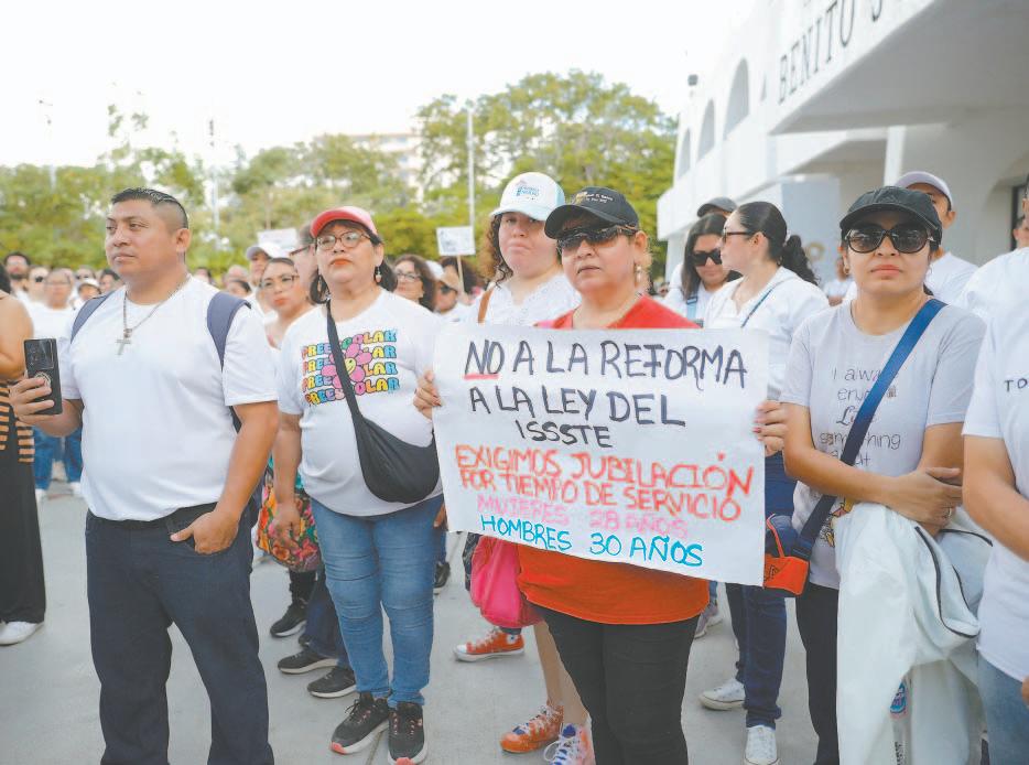 LOS maestros marcharon sin sus dirigentes sindicales, a quienes acusan de no velar por sus intereses y sólo pensar en “llenarse de dinero los bolsillos”; aseguran que lucharán con todo a su alcance, en contra de la reforma a la Ley del ISSSTE, que atenta contra sus derechos y percepciones.- (Jorge Villagómez)