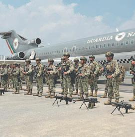 La tarde de ayer una compañía de 90 elementos partió de la Ciudad de México, en un avión Boeing 727 de la Guardia Nacional, con destino a la ciudad de Tijuana, donde colaborarán con las autoridades de los tres niveles de Gobierno para inhibir los actos delictivos, informó la Secretaría de la Defensa Nacional (Defensa). En tanto, otros 90 integrantes del Cuerpo de Fuerzas Especiales se trasladaron a la fronteriza Ciudad Juárez, Chihuahua, en un avión de