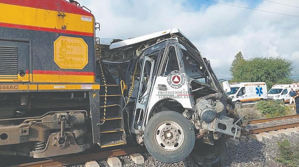 GUANAJUATO, Gto.- Una tragedia sacudió la mañana de ayer al municipio de Comonfort, en Guanajuato, luego de que un tren de carga perteneciente a la empresa Kansas City Southern chocara contra un camión de transporte de personal en el cruce con la calle Nopalera, dejando como saldo preliminar cinco personas fallecidas y 18 lesionadas. De acuerdo con información de la Dirección Municipal de Protección Civil, el siniestro se registró en el cruce ferroviario que conduce hacia la comunidad de San Pedro Hasta el lugar se movilizaron cuerpos de emergencia y elementos de Seguridad para atender a los heridos, quienes fueron trasladados de inmediato a hospitales cercanos para su atención médica. Las autoridades municipales difundieron una ficha informativa solicitando el apoyo de la ciudadanía para localizar a los familiares de las personas que perdieron la vida, ya que ninguna de ellas había sido identifi cada formalmente hasta la tarde de ayer.