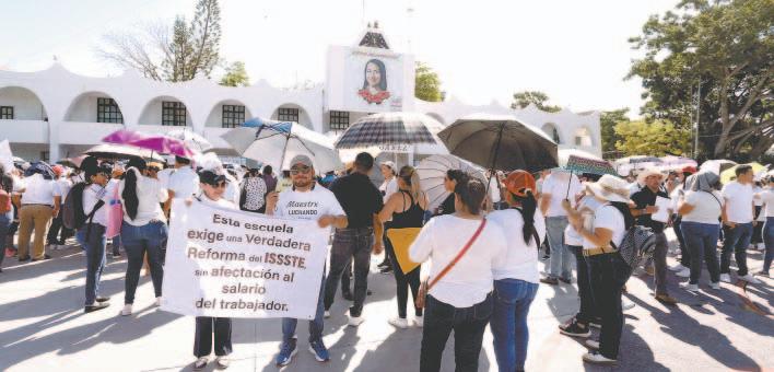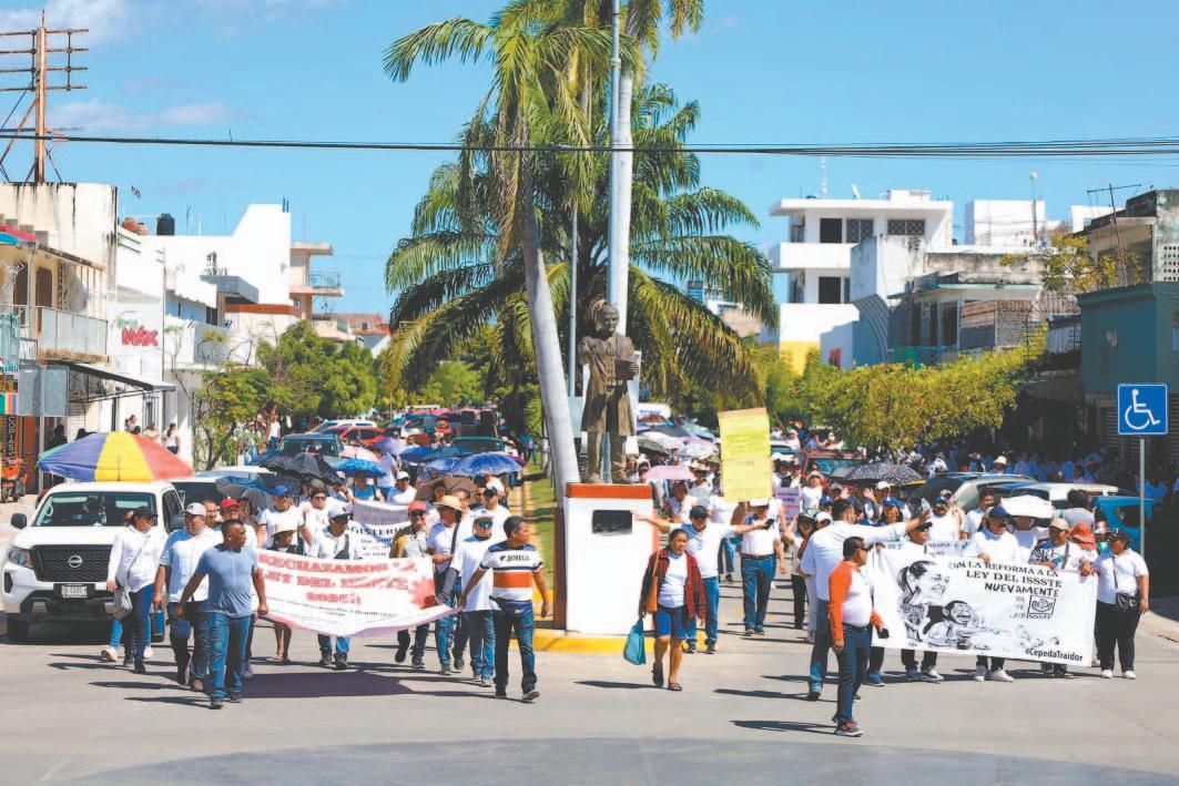 Alrededor de 15 mil profesores y burócratas estatales tomaron las calles de los municipios Othón P. Blanco, Benito Juárez y Felipe Carrillo Puerto en protesta por la reforma a la Ley del ISSSTE / Por acoso sexual, investigan a siete maestros del Colegio de Bachilleres, en Chetumal / Frente frío arruina plantíos de sandía en José María Morelos