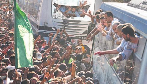 zos en Ramala, en Cisjordania ocupada, y en Jan Yunis, en la Franja de Gaza, cuando llegaron los primeros autobuses con los presos palestinos liberados, como estipula el acuerdo de tregua.