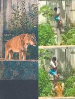 dente, él escaló un muro de más de seis metros de altura, superó las rejas de seguridad, accedió a uno de los árboles y entró al recinto”, señaló en un comunicado. Videos virales del ataque muestran a la leona acostada junto al vidrio que la separa de los visitantes, cuando detecta