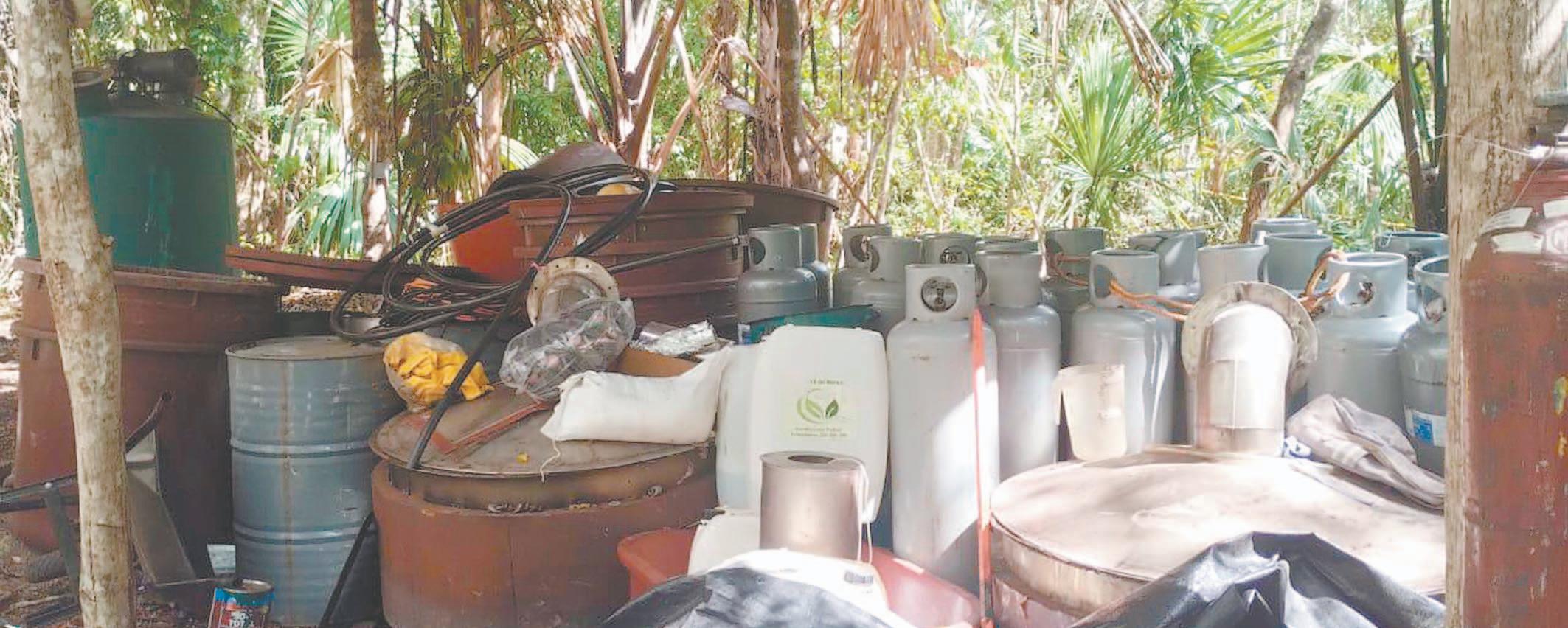 DURANTE un operativo conjunto en Petcacab se decomisaron químicos y utensilios para la elaboración de sustancias ilícitas; también se encontraron dispositivos de radiocomunicación, tanques de gas y hasta casquillos percutidos de armas de grueso calibre.- (PorEsto!)
