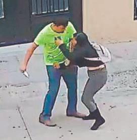 Cámaras de vigilancia captaron la agresión. En la grabación se ve a un individuo de camisa fosforescente con un cuchillo en la mano que va tras Milagros Monserrat. (Agencias)