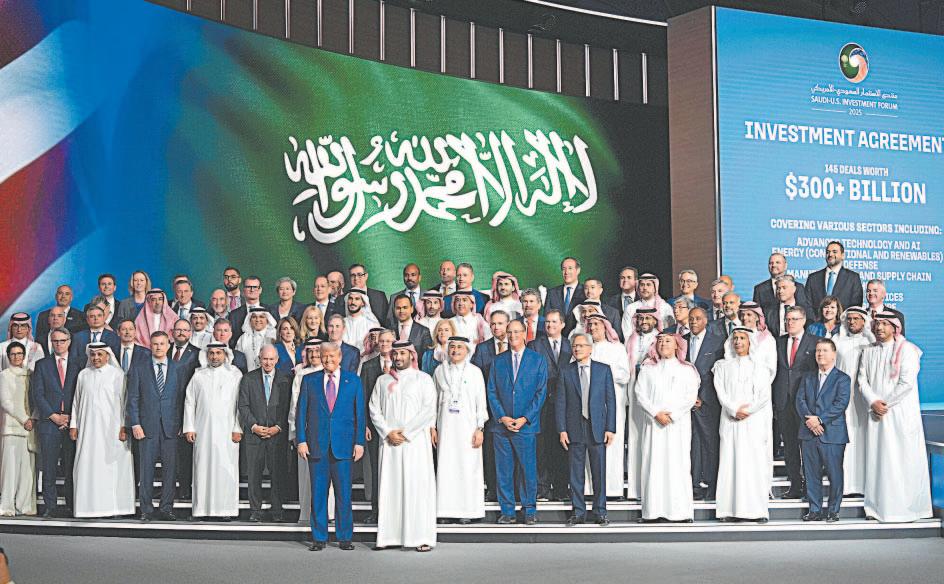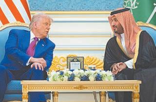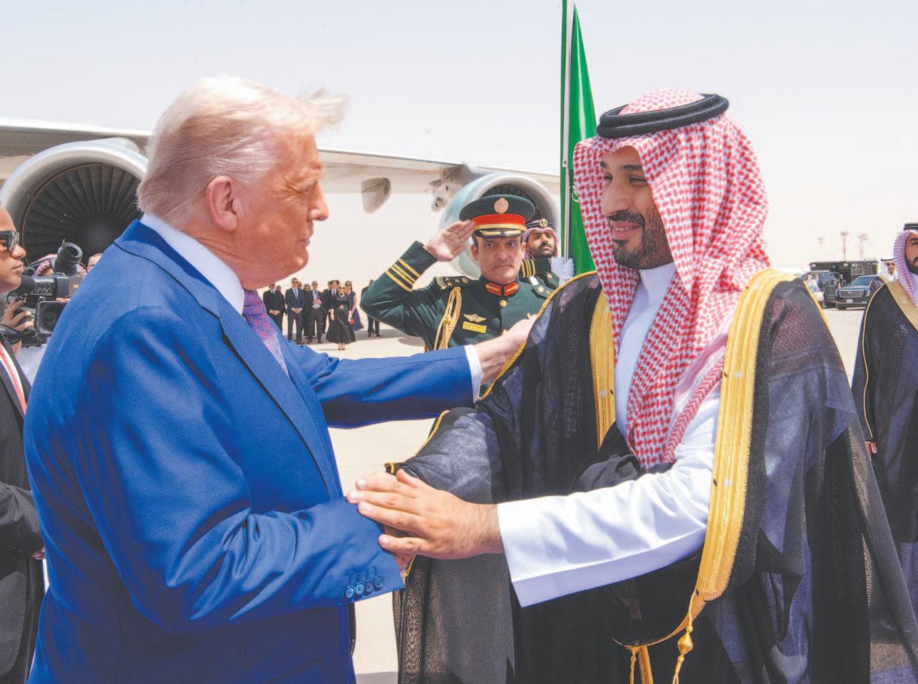 Frente a las cámaras, una numerosa comitiva de personalidades de la realeza y del mundo empresarial saudita esperaron para estrecharle la mano a Trump y al príncipe heredero, incluyendo a Elon Musk, la persona más rica del mundo y asesor cercano de Trump, que hizo una inusual aparición en traje de chaqueta.
