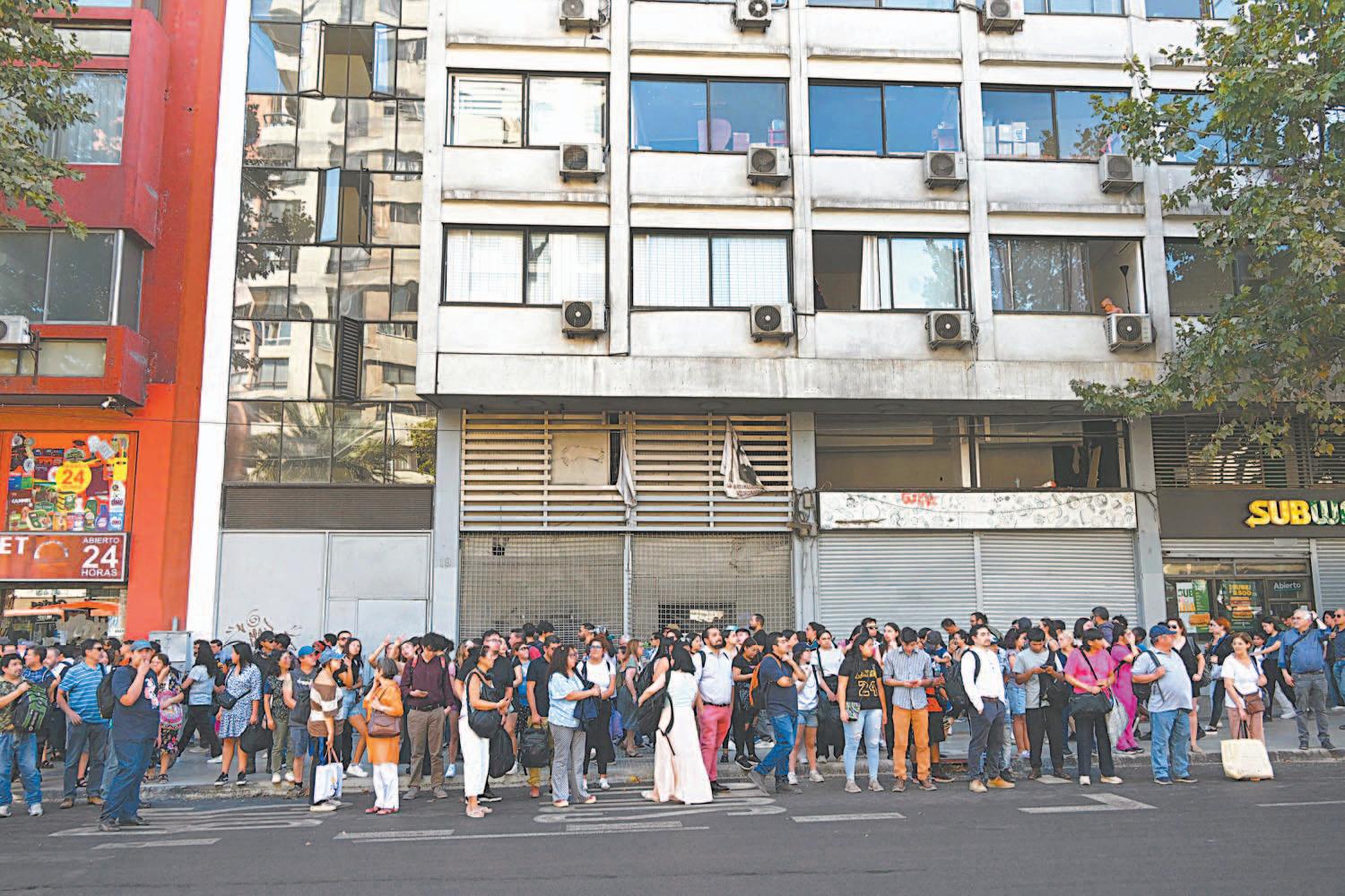personas apresadas en atracciones de altura en parques de diversiones. La circulación en Santiago fue una de los más afectadas tras el desalojo del metro, que transporta a diario alrededor de 2.3 millones de usuarios.