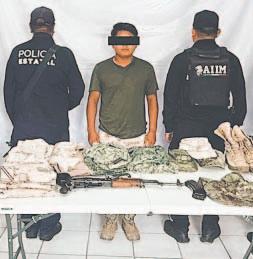 47 , un cargador, tres cartuchos útiles, una mochila y un uniforme con camuflaje tipo militar.