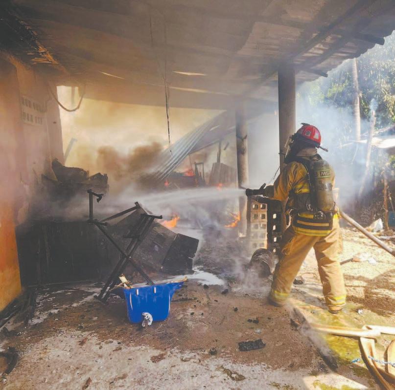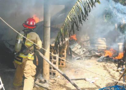 LOS bomberos combatieron un incendio que consumió una cocina de madera y lámina, en Calderitas.- (W. Duran)