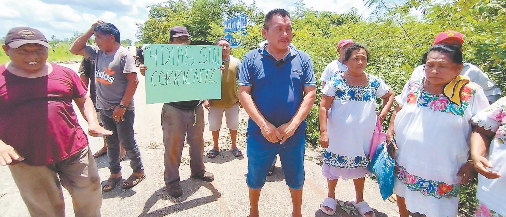 AL notar la presencia de manifestantes, una cuadrilla de la Comisión Federal de Electricidad se retiró sin solucionar los apagones en José María Morelos, lo que causó indignación. Los pobladores cerraron carreteras como medida de presión para solicitar atención.- (Lusio Kauil)