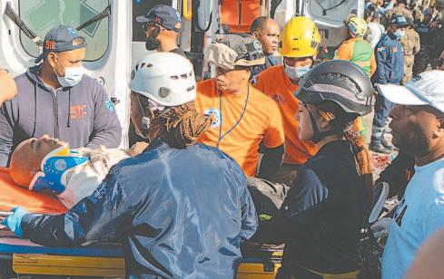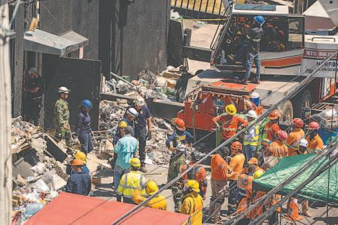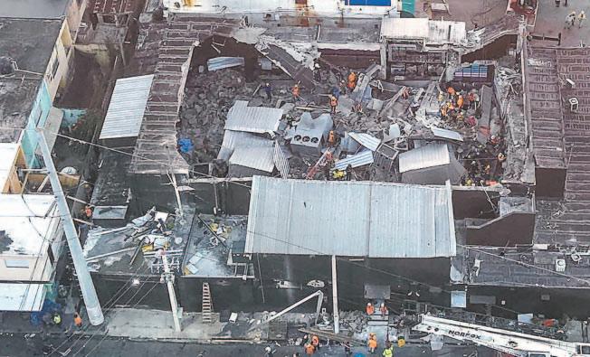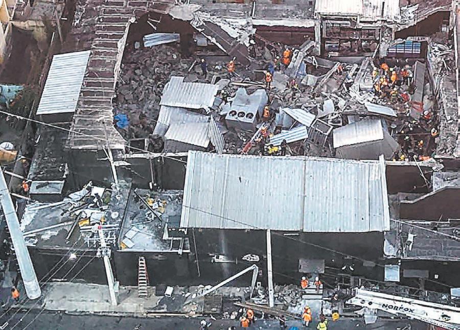 Una grúa de construcción apoyaba la retirada de bloques. Con el pasar de las horas, las labores de rescate comenzaron a limitarse a la recuperación de cadáveres.