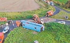 Algunos de los fallecidos quedaron atrapados en el autobús mientras otros fueron expulsados del vehículo al volcarse, añadieron los bomberos. Diez personas, incluidos los dos niños de entre 2 y 4 años, murieron en el lugar del accidente. Una persona murió debido a las heridas en un hospital local, informó la Policía.