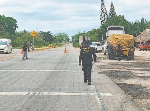 Desde la mañana del pasado lunes se instaló un retén con un laboratorio móvil de Petróleos Mexicanos (PEMEX), a la salida de la Aduana Mexicana.