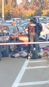 Una imagen de video publicada por la Policía mostró al pistolero vestido “con ropa oscura con una posible sudadera con capucha o pasamontañas” y sosteniendo un “objeto de color claro”.