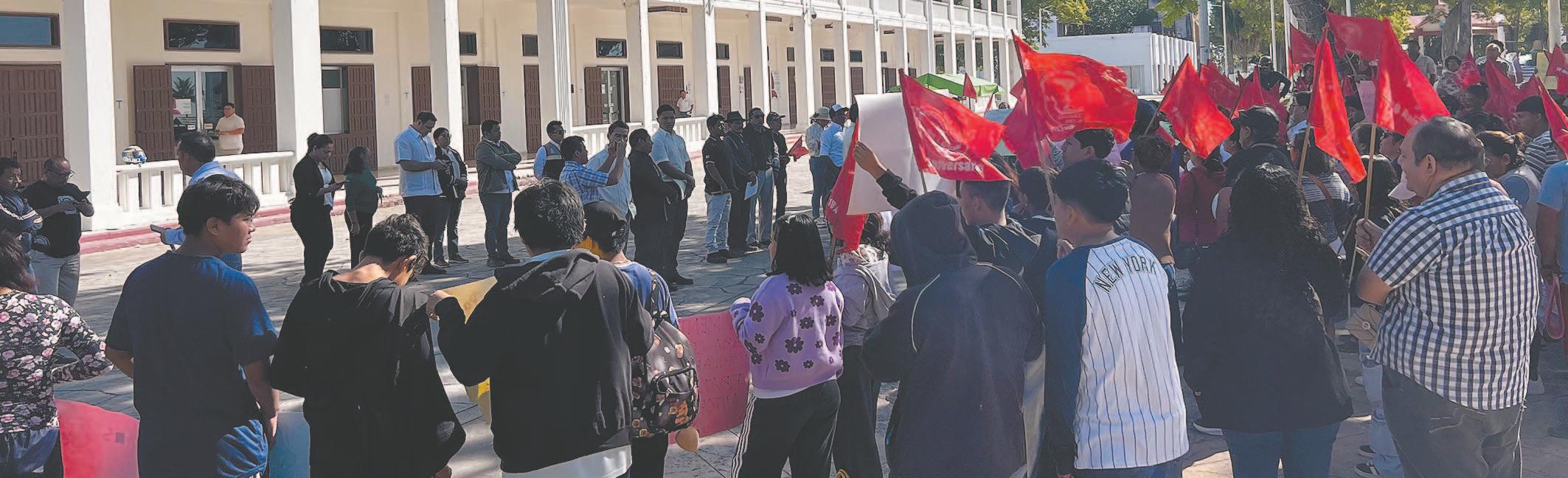 CON pancartas y gritos, cientos de manifestantes permanecieron casi tres horas en la Plaza Cívica de la Bandera, donde exigieron apoyo para familias en condición vulnerable y que la mandataria Mara Lezama cumpla sus compromisos de campaña. Entregaron un pliego petitorio.- (E. Martín)