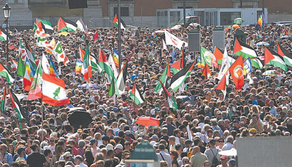 ROMA.- Cientos de miles de personas se manifestaron ayer en Roma en contra de la guerra en la Franja de Gaza, en una protesta convocada por la oposición al Gobierno de extrema derecha de Giorgia Meloni, a quien acusan de “complicidad”.