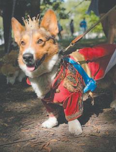 En total unos 20 entusiastas de los corgi vistieron a sus mascotas con coronas, tiaras y trajes reales y los hicieron desfilar frente al palacio en el centro de Londres.