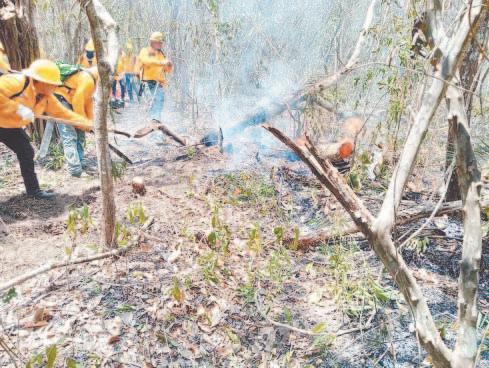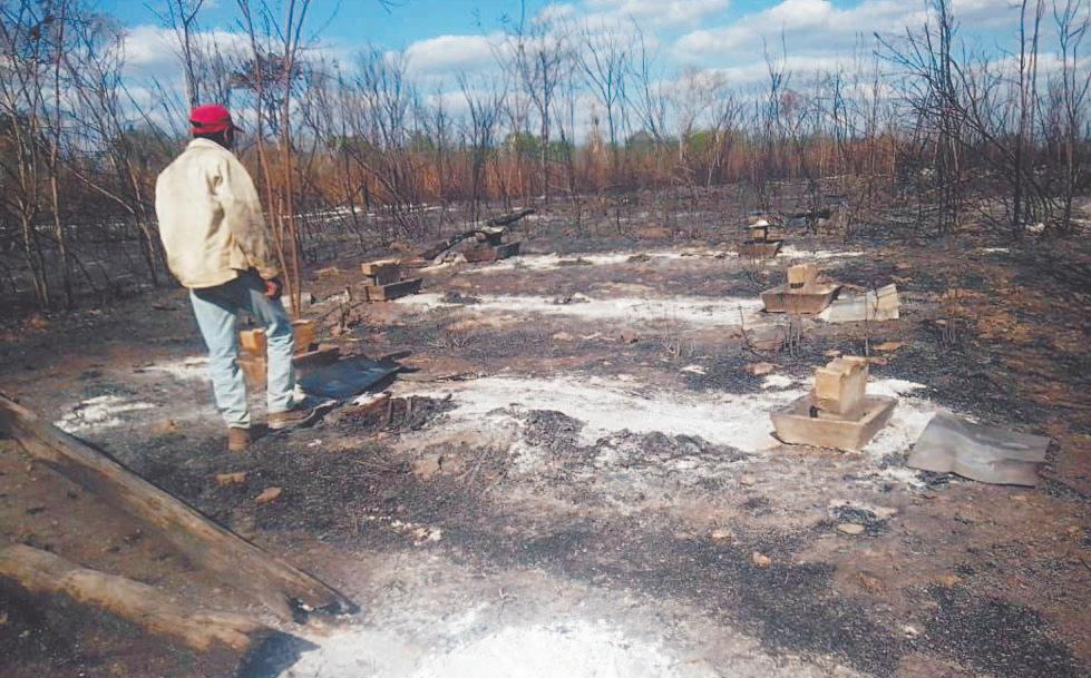 EL apiario afectado, que quedó reducido a cenizas y brasas, está ubicado a menos de seis kilómetros de la comunidad y ahora, el temor es que las llamas causen más daños; hasta ahora, la ayuda de los brigadistas ha estado más ocupada en preparar guardarrayas en la región de Chanchén.- (Amado Caamal)