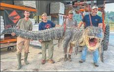 La caza se desarrolló en el río Yazoo, en medio de una noche oscura y llena de tensión. Los hombres, quienes tienen años de experiencia en la caza de co codrilos, no se conformaron con capturar a ejemplares de menor tamaño, por lo que decidieron ir por uno de medidas gigantescas. El cocodrilo gigante se resistía; sin embargo, los ca zadores no se rindieron. Con paciencia y determinación, lograron someter al animal.