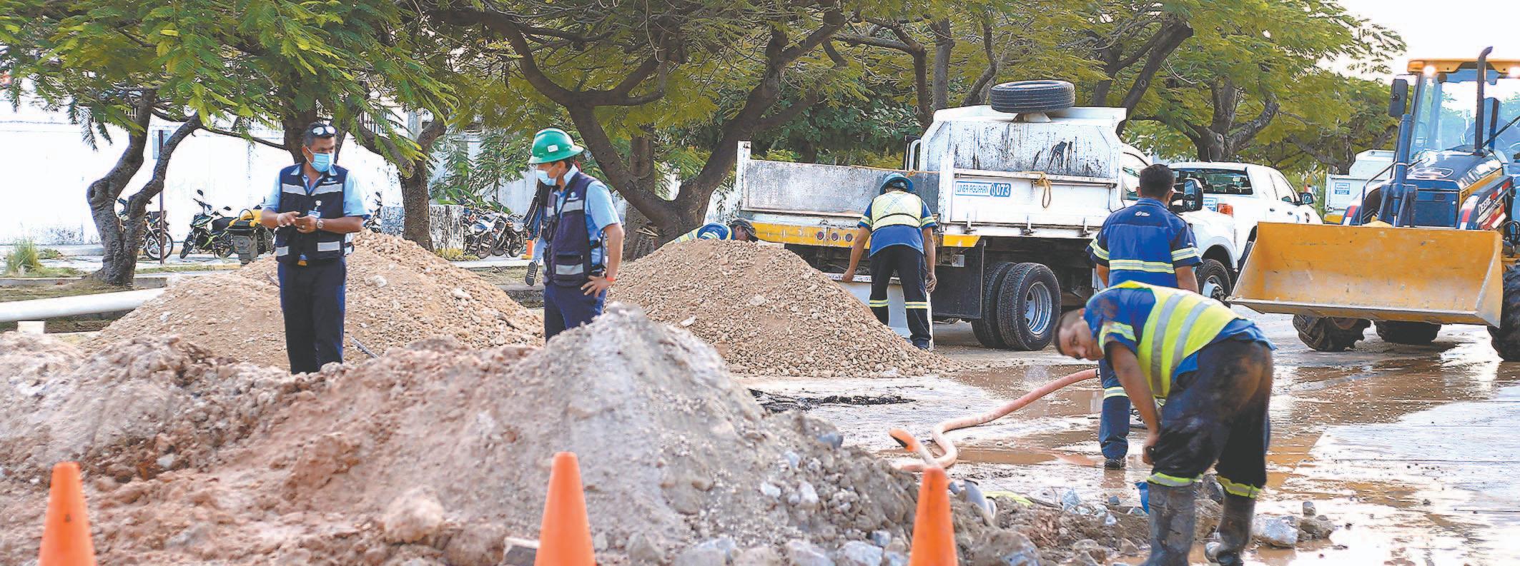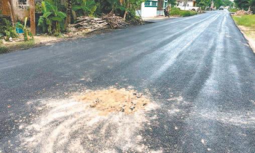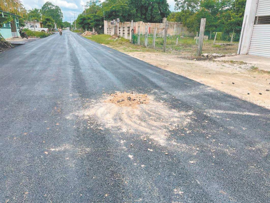 A unas horas de haberse inaugurado llegaron trabajadores de la dependencia a escarbar, por una supuesta fuga, y no volvieron a cubrir con asfalto.- (L.E. Cauich)