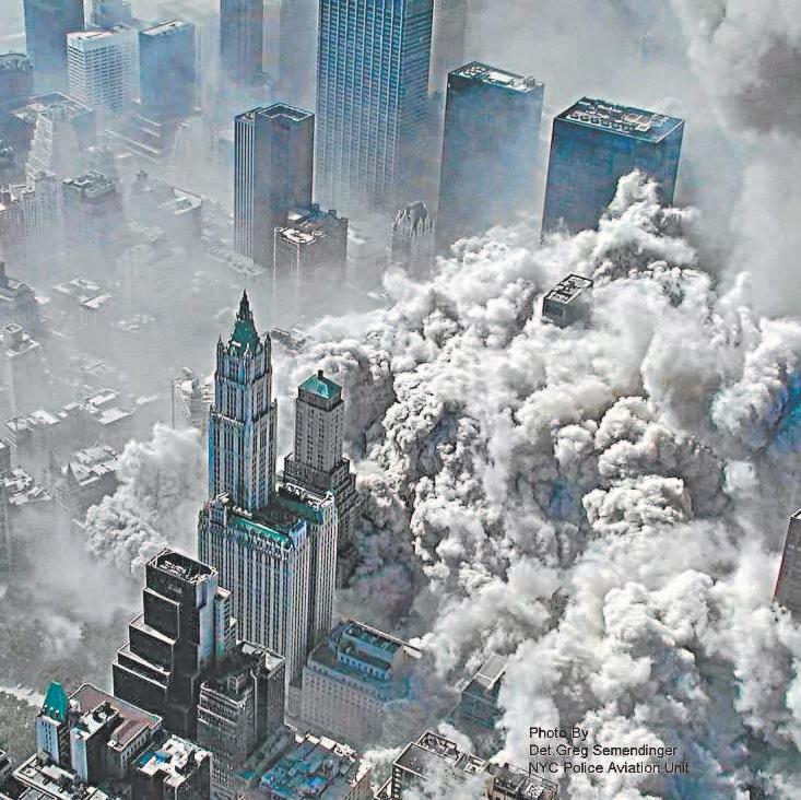 En menos de dos horas, ambas torres en Nueva York, de 110 pisos cada una, se habían desintegrado, enterrando a miles de oficinistas y personal de rescate bajo toneladas de escombros. Todo el Sur de Manhattan fue evacuado, los empleados federales fueron enviados a casa anticipadamente, las escuelas se cerraron, y el espacio aéreo de los Estados Unidos fue cerrado por primera vez, dejando varados a miles de viajeros tanto en los Estados Unidos como en el extranjero.