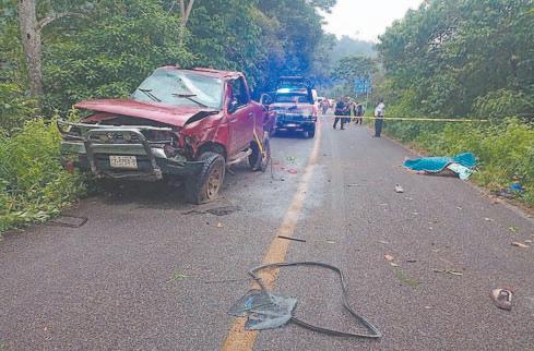 Los reportes de las autoridades indicaron que el percance de la camioneta Toyota Tacoma , de color rojo, con placas de circulación CZ-5754-,B del Estado de Chiapas, ocurrió la tarde del sábado en el tramo carretero federal Santo Domingo-Unión Juárez, a la altura del banco de arena.