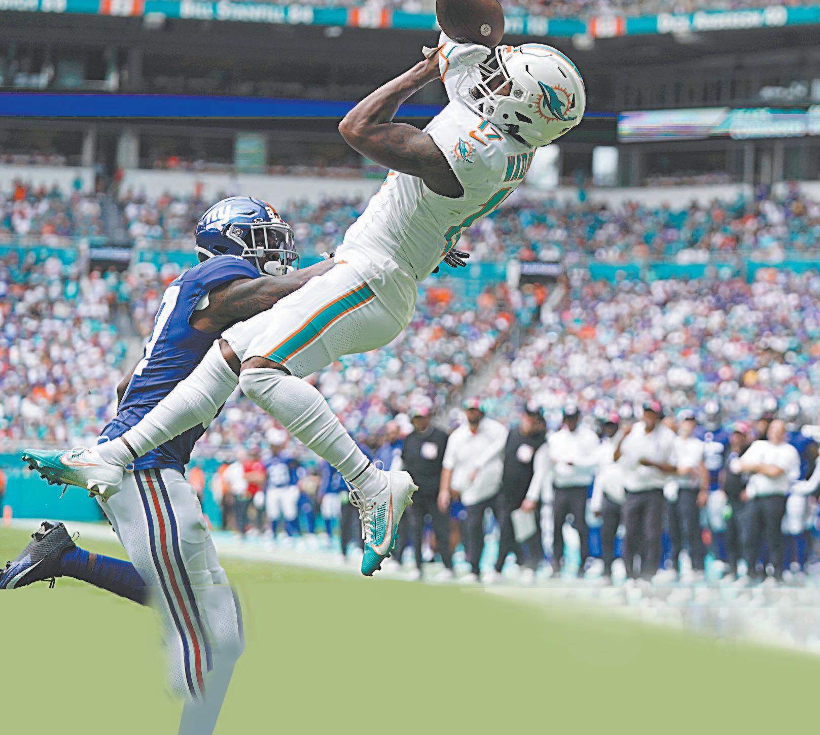 e’Von Achane y Tyreek Hill destacaron ayer en el triunfo por 31-16 de los Delfines de Miami sobre Gigantes de Nueva York, correspondiente a la semana 5 de la temporada 2023 de la NFL.