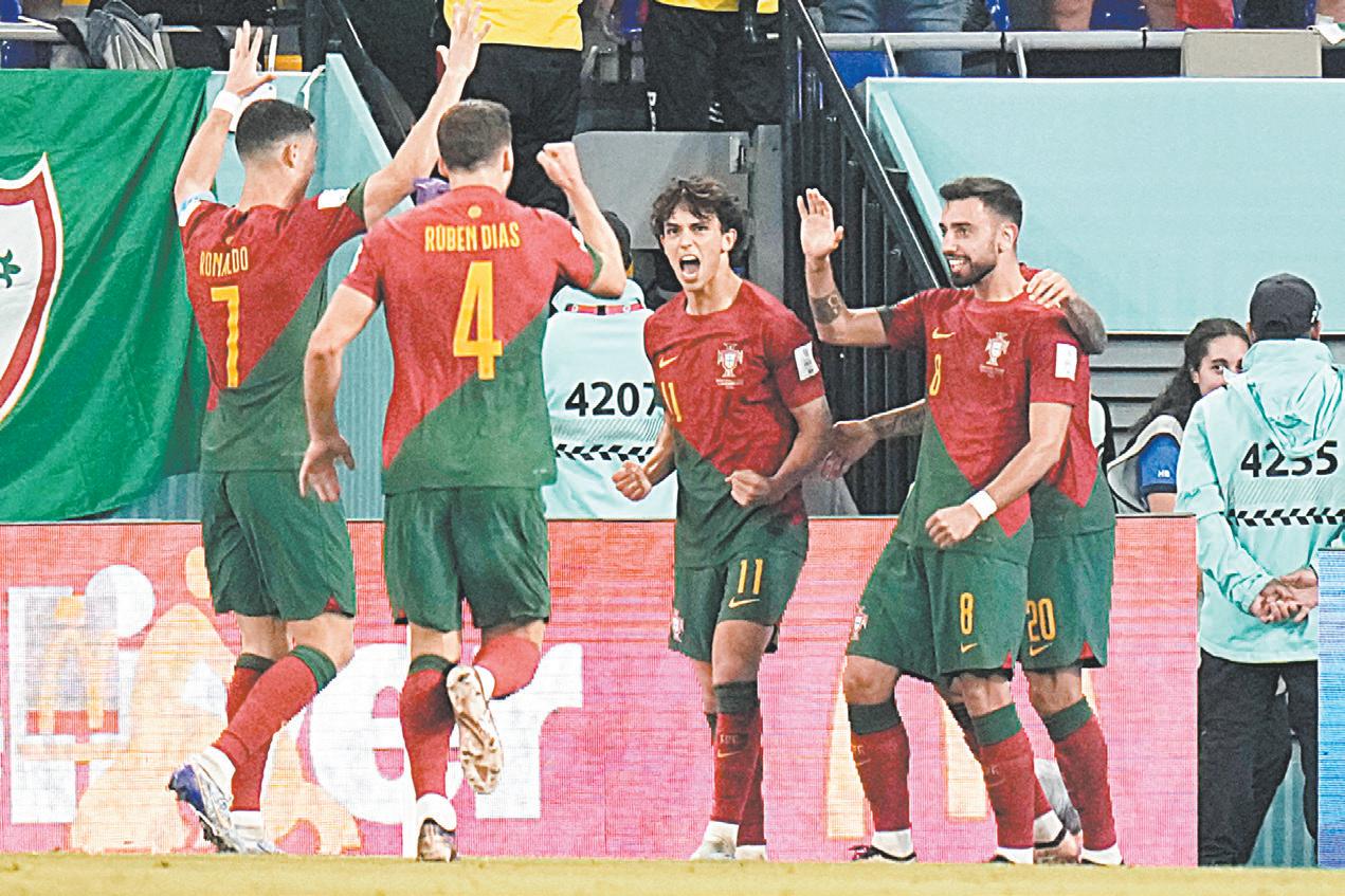 2 VIERNES 25 DE NOVIEMBRE DEL 2022 EL BICHO, ÚNICO FUTBOLISTA QUE HA CONVERTIDO GOL EN 5 MUNDIALES CR7 AUMENTA SU LEGADO EN EL TRIUNFO ANTE GHANA Portugal termina con la malaria y vuelve a ganar en su estreno; la última vez que inició con el pie derecho fue en Alemania 2006, tras derrotar 1-0 a Angola PORTUGAL (4-3-3) D. Costa; Cancelo, R. Dias, D. Pereira, R. Guerreiro; B. Silva, R. Neves, Otavinho; B. Fernandes, Cristiano y J. Félix.