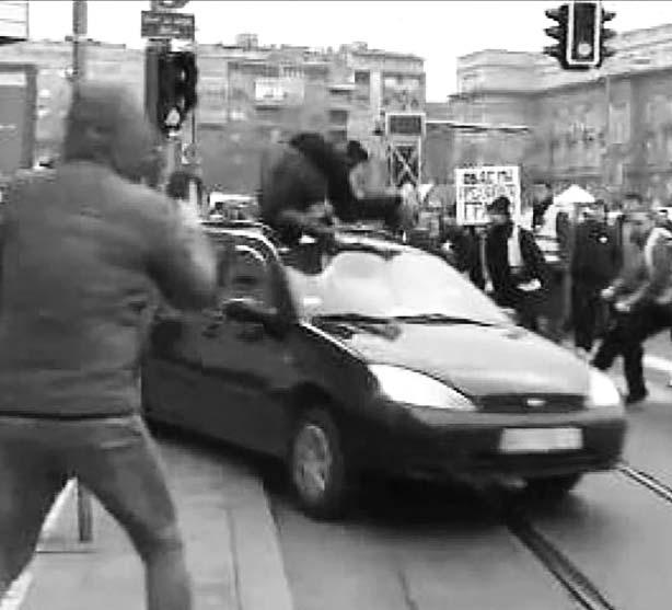 Una testigo, la doctora Elena Matkovic, dijo a la televisora N1 que el conductor hizo retroceder su auto una corta distancia, y los manifestantes pensaron que daría la vuelta, alejándose del bloqueo, pero en cambio, aceleró hacia adelante, embistiendo a las personas.