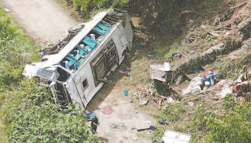 BOGOTÁ.- Al menos 13 personas murieron y 29 resultaron heridas ayer, luego de que un autobús se accidentó en la carretera que une a la ciudad de Pasto (Suroeste) con el paso fronterizo hacia Ecuador, anunciaron autoridades. “Tenemos un saldo muy trágico. Trece personas fallecidas hasta el momento y 29 que han sido remitidas a centros hospitalarios”, aseguró a medios ayer el coronel Jaime Ríos, comandante de la Dirección de Tránsito y Transporte de la Policía.